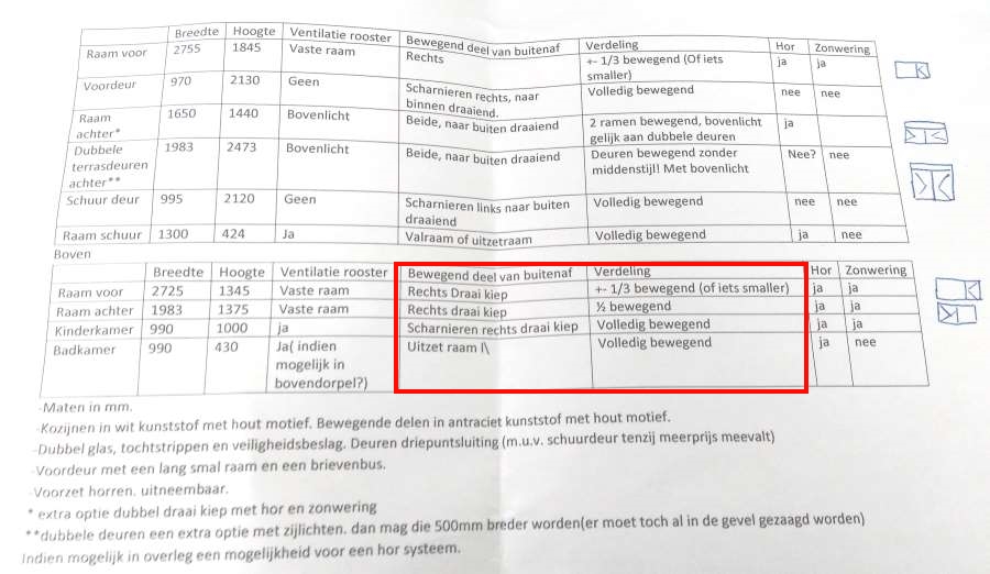 - Extra’s zoals bij voorbeeld een ventilatierooster, insectenhor en/ of rolluik